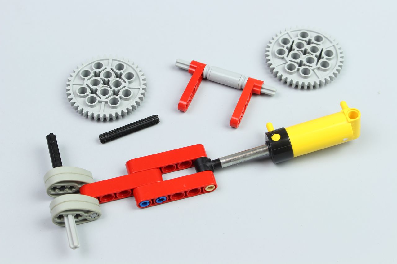 Please note that the 4 hand pump is a minimum with the air tank to have correct functioning. You can replace by home made compressor, bike pump or air tank bottle but in lego, you will need 4 handpump plus a air tank. Note the hose use can be replace by any lengh you want except the two on the engine which are 9cm and 13.5cm.