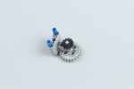 The pneumatic engine is a single engine with a non modified switch and a inertia wheel with 1:5 ratio increasing (like my old one but better built and balanced). It enables the engine to run smoothly without stops under charge. A centrifugal governor is only for viewing convenience and has no regulator function. Note that the timing ignition is set to 30° and do not require adjustment and the engine run at 100rpm at its maximum with 5 hand pump. You pump, start the engine, and it runs. I have also made a clutch system in order to start the engine, and then power the mine using sliding gear.