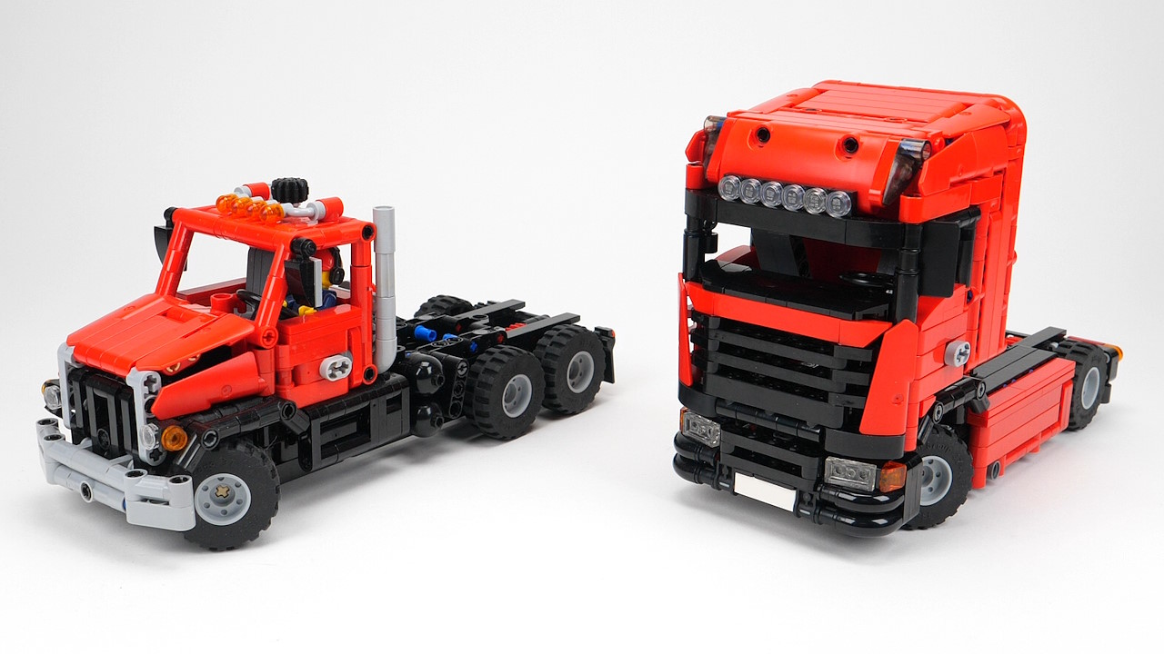 Following my 1/30 LEGO Technic American Heavy-Duty Truck, here is the European version, based on Scania design. Features drive, steering, a tri-axle trailer with fixed or steerable axle, openable doors and tilting cab. Available in motorized or manual version in a single download, all upgradable.