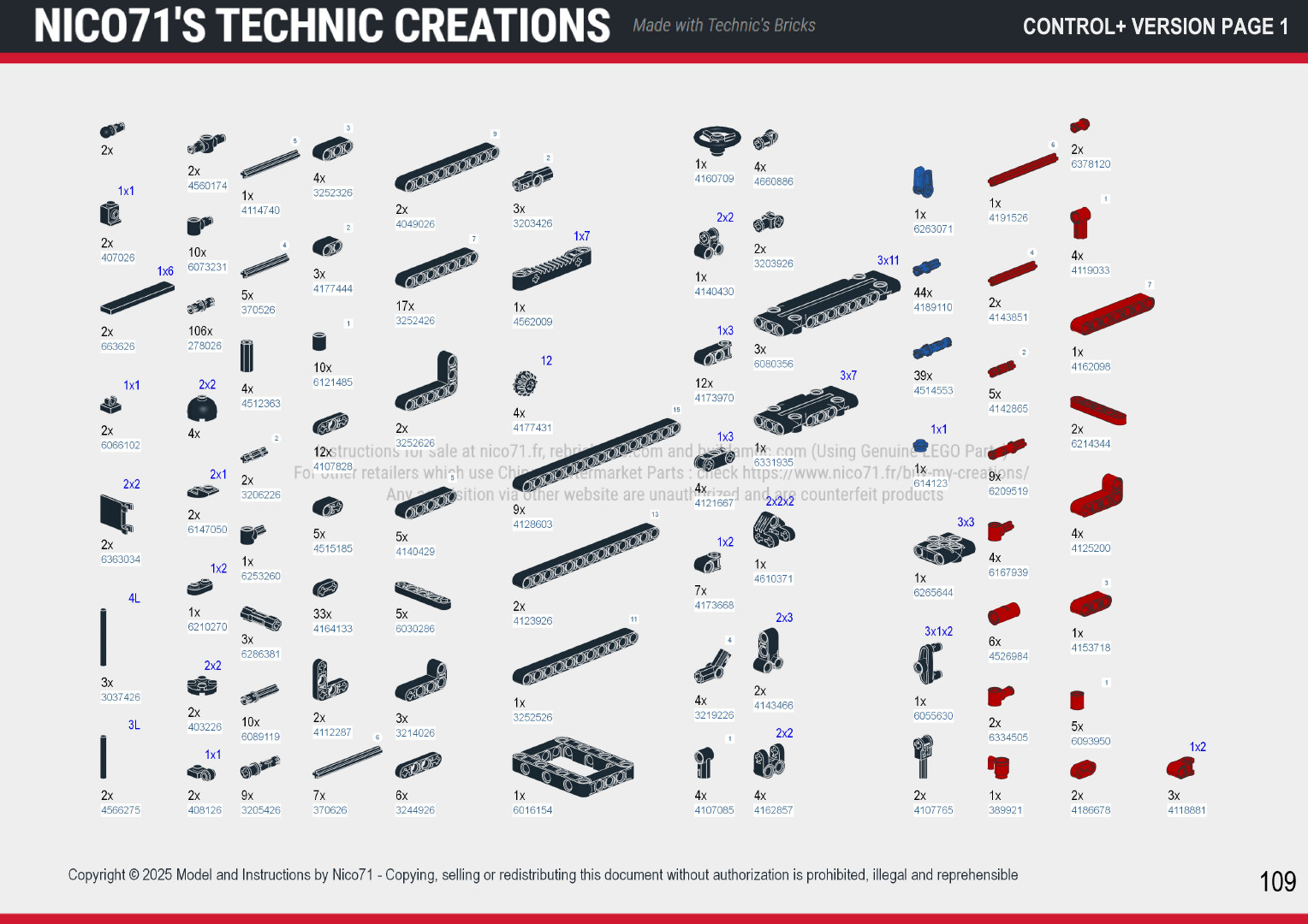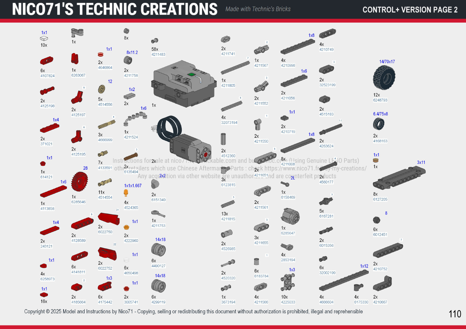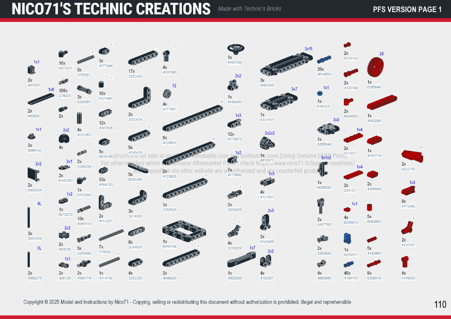 📕 You only need the parts and the instructions. You can purchase the PDF instructions on this shop (all versions included) and build with your own parts (you can build the manual version, then upgraded later by adding the motors and battery/remote). The Rebrickable inventory included the parts to build all versions so with spare for the manual one). See the end preview below to see the difference.